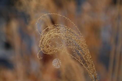 I went for a walk this morning not thinking I would see anything too striking - the sun was not too bright, and spring has not sprung yet.  But I found this curly plant, and I like the little lens reflection artifact that appeared in the picture beneath it, too.